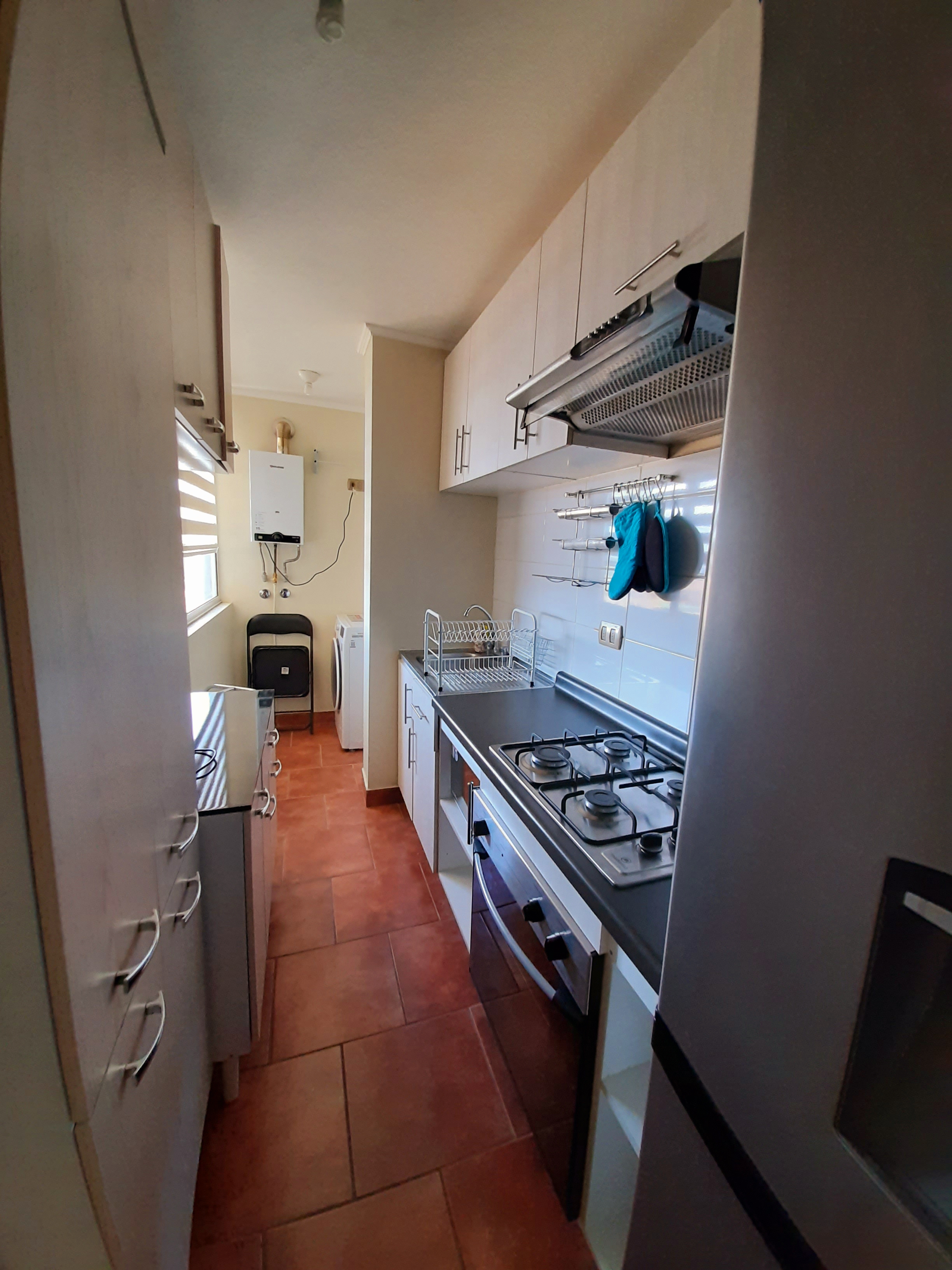 COCINA AMOBLADA Y EQUIPADA COMPLETAMENTE , CON ENCIMERA , HORNO ELÉCTRICO , REFRIGERADOR Y TODOS LOS ARTEFACTOS DE COCINA PARA SER OCUPADOS .